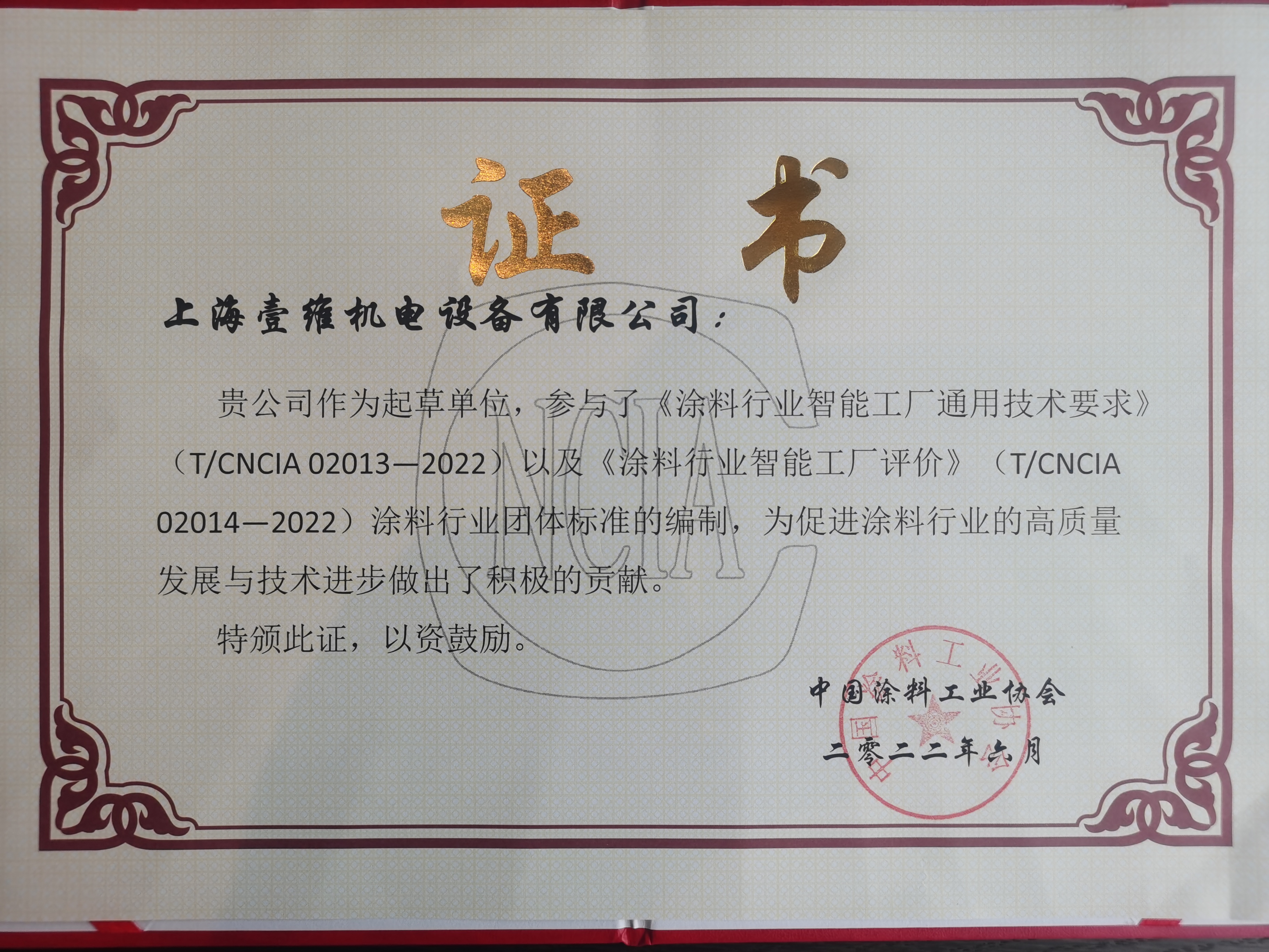 【概要描述】8月10日-12日,上海壹維應(yīng)邀參加中國涂料工業(yè)協(xié)會 “2022中國國際涂料智能制造產(chǎn)業(yè)鏈發(fā)展大會”,此次會議圍繞“數(shù)智賦能,低碳未來”這個主題。旨在以推動涂料行業(yè)完善綠色制造體系,全面推行綠色制造。助力涂料行業(yè)實(shí)現(xiàn)碳達(dá)峰、碳中和目標(biāo)。實(shí)現(xiàn)“中國制造”到“中國智造”和“中國創(chuàng)造”,實(shí)現(xiàn)涂料全產(chǎn)業(yè)鏈綠色低碳轉(zhuǎn)型發(fā)展。 上海壹維作為國內(nèi)規(guī)模較大的涂料設(shè)備制造商之一,是較早引入智能制造,高效環(huán)保技術(shù)的涂料生產(chǎn)設(shè)備廠家。從涂料廠的規(guī)劃、勘察、設(shè)計、采購、施工到投產(chǎn),具有豐富的行業(yè)經(jīng)驗(yàn)。涂料生產(chǎn)過程實(shí)現(xiàn)數(shù)字化、智能化、網(wǎng)絡(luò)化的運(yùn)營,從根本上提高產(chǎn)品功能、性能和市場競爭力。同時在此次大會上,上海壹維參與《涂料行業(yè)智能工廠通用技術(shù)要求》以及《涂料行業(yè)智能工廠評價》涂料行業(yè)團(tuán)體標(biāo)準(zhǔn)的編制得到了涂料工業(yè)協(xié)會的認(rèn)可,并特頒發(fā)證書以資鼓勵。 “中國制造2025”是2022年的我國經(jīng)濟(jì)工作重心之一,面向未來,上海壹維將堅持助力涂料企業(yè)打造智能數(shù)字化工廠! ?